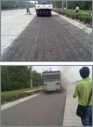在本工程中我公司承擔(dān)了橡膠瀝青應(yīng)力吸層的施工,共攤鋪橡膠瀝青應(yīng)力吸收層3.5萬(wàn)平方米,施工質(zhì)量得到業(yè)主好評(píng)。